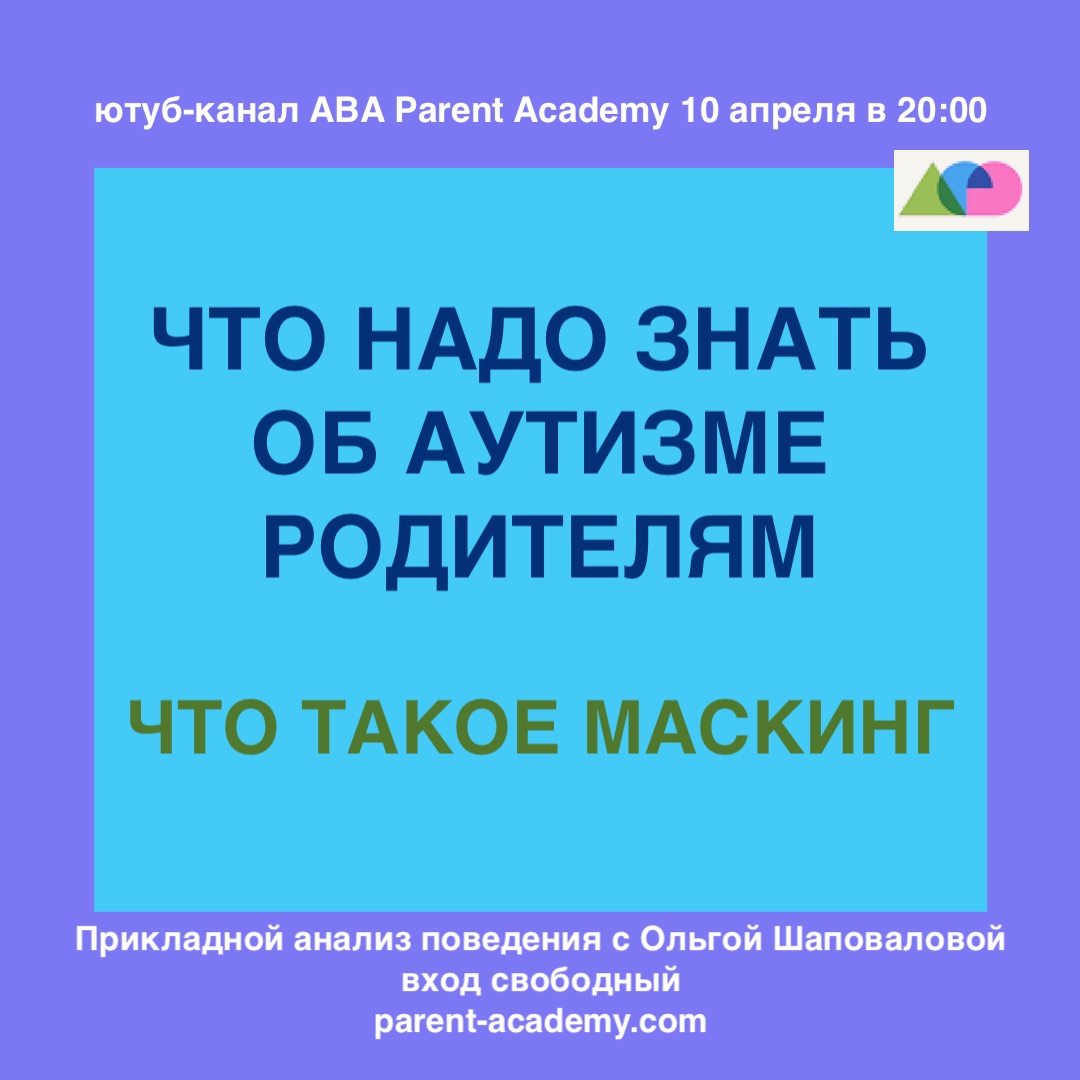 Приходите в пятницу 10 апреля в 20.00 по московскому времени на ютуб-канал ABA Parent Academy или инстаграм parent_academy_aba