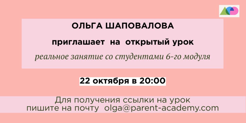 Если у вас есть вопросы, то пишите на почту olga@parent-academy.com